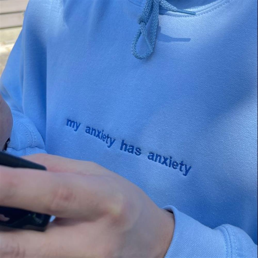 'my anxiety has anxiety' Embroidered Sweatshirts